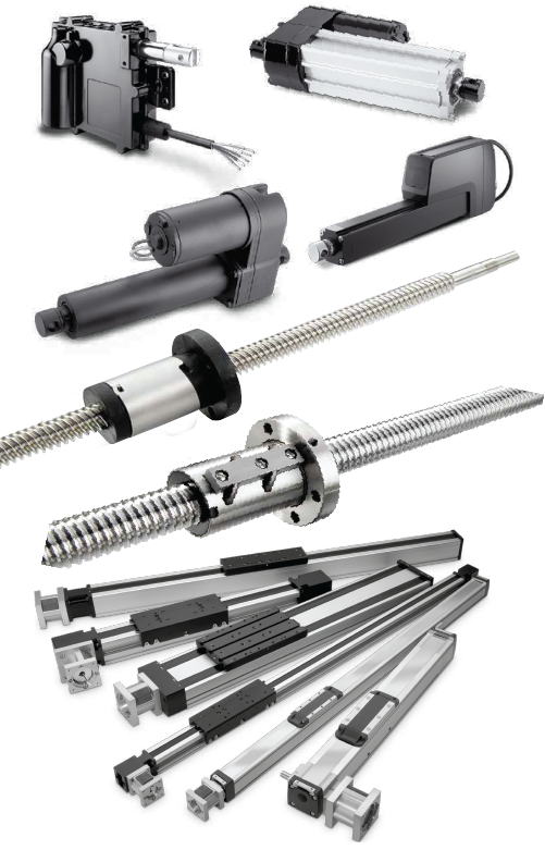 Actuadores lineales, elevadores a husillo, husillos a bolas.